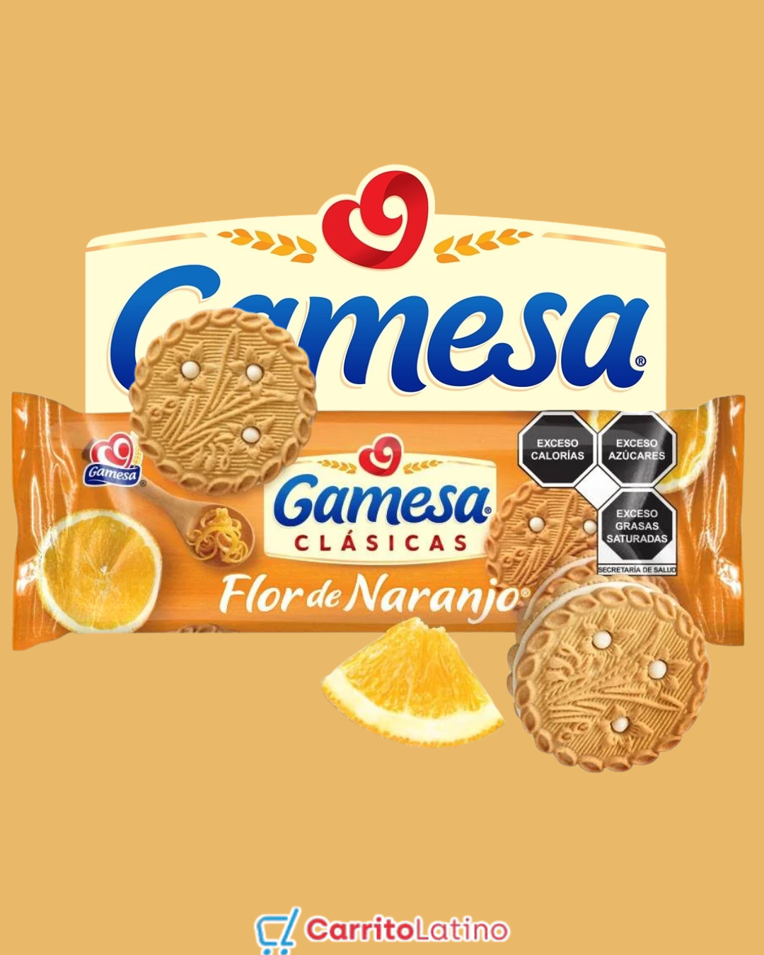 Gamesa Clasicas - Flor de Naranjo 109 gr / 3.85 oz for those cravings. Nothing better than delicious vanilla-orange flavored sandwich cookies with a creamy filling. Accompany them with a glass of milk or your favorite coffee.