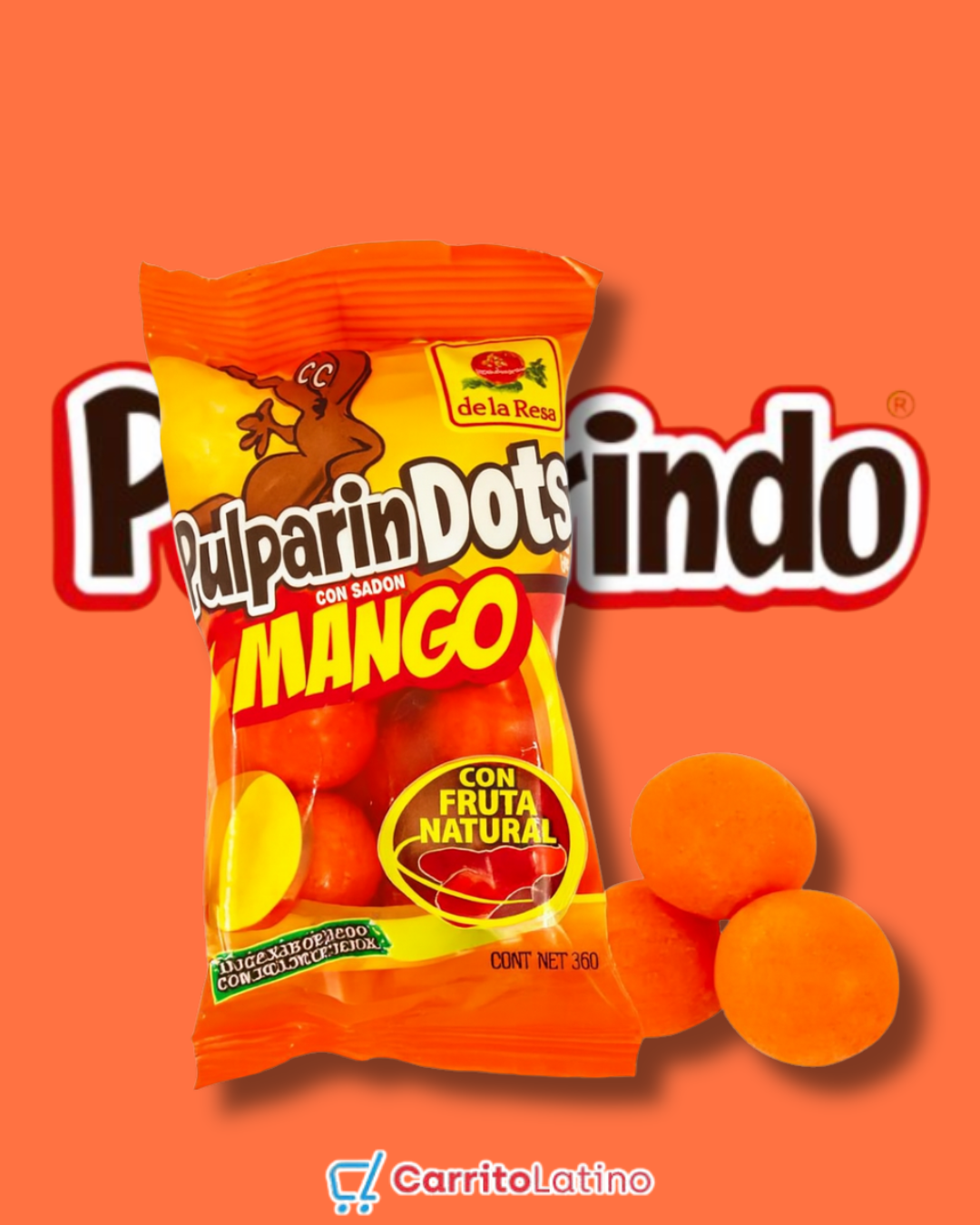 Mango Flavor Pulparindots 12 Pieces 360 gr / 12.8 oz, candy balls filled with Mango flavor filling, candy for all occasions, widely used in Mexican parties.