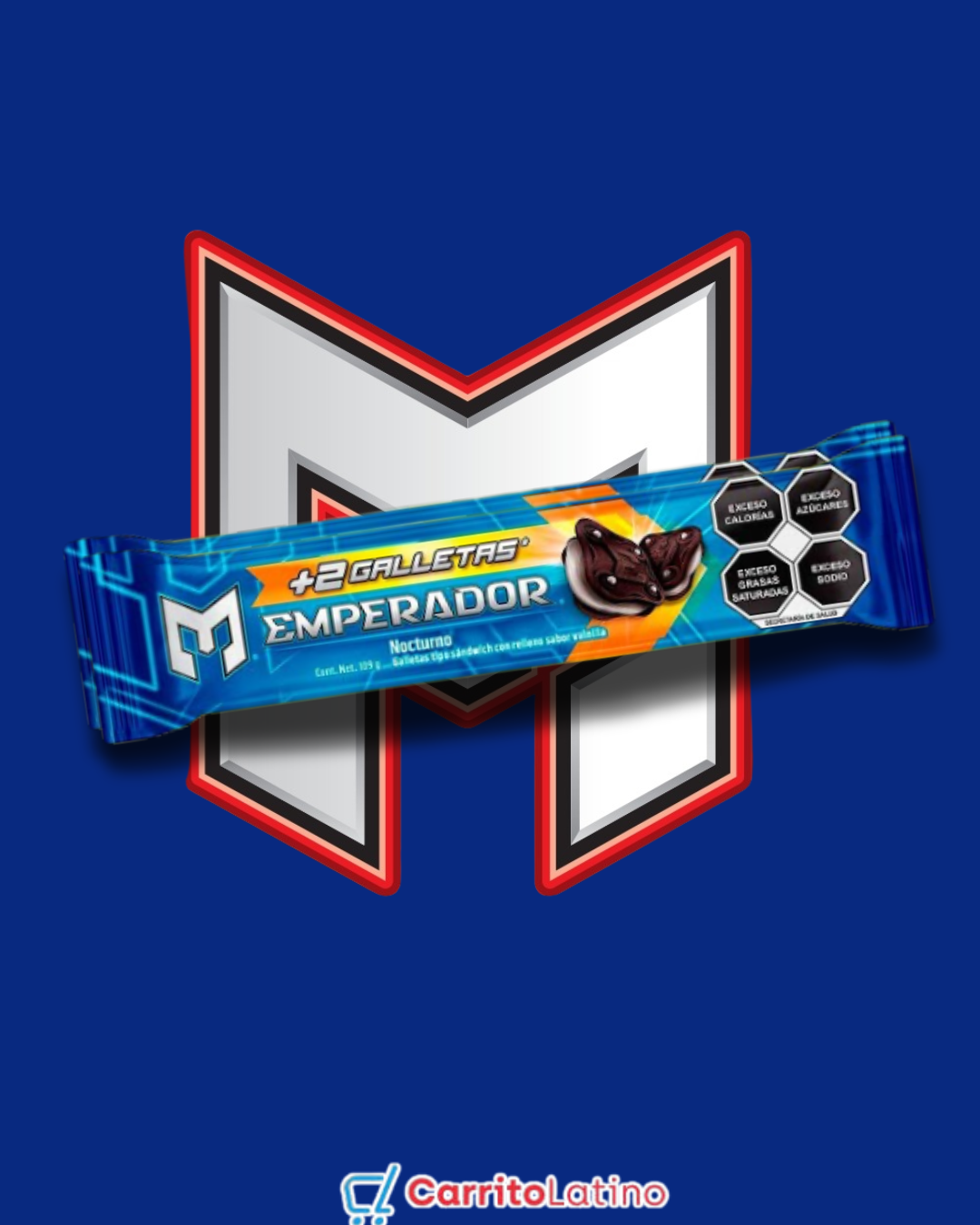 Emperador Nocturno 109 gr / 3.85 oz para esos antojos nada mejor que unas deliciosas galletas tipo sandwich sabor chocolate con relleno cremoso de vainilla. Acompáñalas con un vaso de leche o tu café favorito.